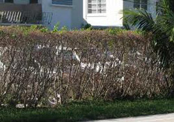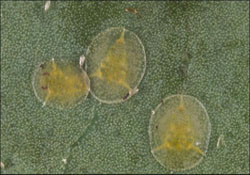 Aside from defoliation, it is important to look for earlier signs of infestation such as eggs, nymphs, and adults on the underside of leaves. Shaking the limbs will cause the adult whiteflies to fly around unlike the gumbo limbo spiraling whitefly which is often seen flying without disturbing the branch.
